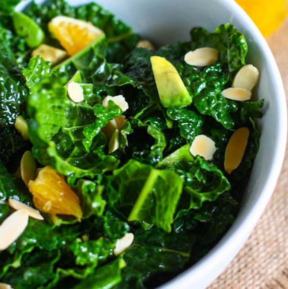 Step 4: Add radicchio, snap peas, avocado, and lemon to the kale and toss to combine. Season with salt and pepper. Serve salad topped with pork.